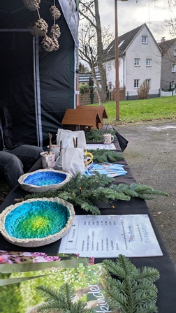 Wir sind sehr dankbar, dass wir unsere Gruppentreffen im Marie-Juchacz-Haus stattfinden lassen können und haben uns daher natürlich nicht zweimal bitten lassen, uns am Weihnachtsdorf der AWO Asseln zu beteiligen. Gegen eine Spende konnten an unserem Stand nicht nur die Futtertassen mitgenommen werden, die wir vor 14 Tagen herstellten, sondern auch einige Restexemplare aus vorherigen Projekten (Insektenhotel, Nistkasten, Vogeltränken, Futterhäuschen). Wir wünschen an dieser Stelle allen frohe und besinnliche Weihnachten und einen guten Rutsch ins neue Jahr!