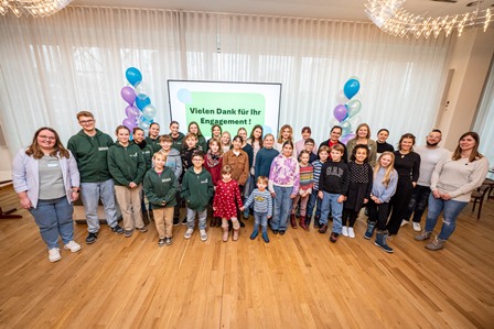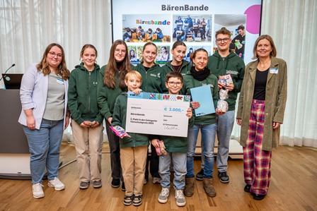 Die Bärenbande (nicht vollzählig) zusammen mit der Tierschutzbeauftragten Frau Dr. Kalka (li) und Bürgermeisterin Gövert (re)