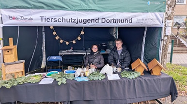Wenn die Zeit es zulässt, sind wir auch z.B. auf Stadtteilfesten vertreten. Die Leute können sich mit Infomaterialien eindecken, wir infomieren über die aktuellen Kampagnen des Tierschutzbundes und für die Kinder haben wir meist unser beliebtes Glücksrad dabei - mit Tierschutz-Quiz versteht sich!